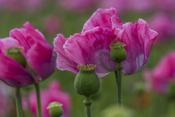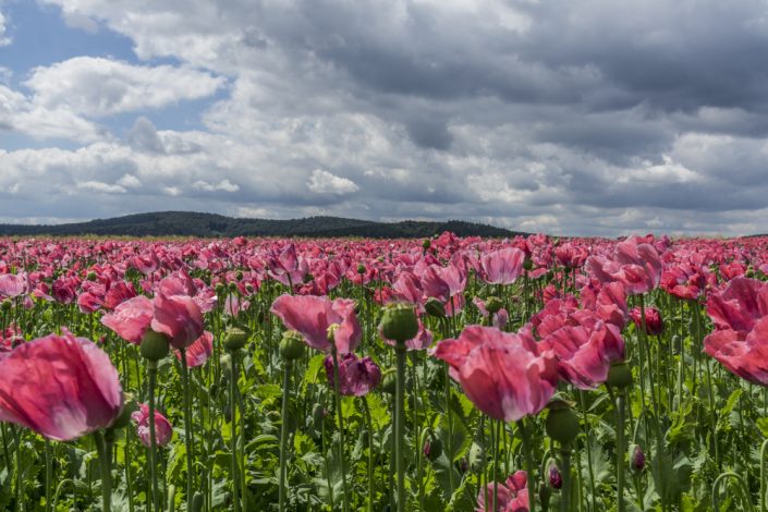Durch mehrere Beiträge in der Hessenschau bin ich auf die Mohnblüte in der Nähe von Bad Soden-Allendorf aufmerksam geworden.  In Deutschland sind nur zwei Sorten (‚Zeno morphex‘ und ‚Mieszko‘) mit einem sehr niedrigen Morphingehalt zum genehmigungspflichtigen Anbau durch die Bundesopiumstelle zugelassen.  Ein ortsansässiger Bauer hat mehrere Felder angebaut und diese zu einem Erlebnispfad ausgebaut.