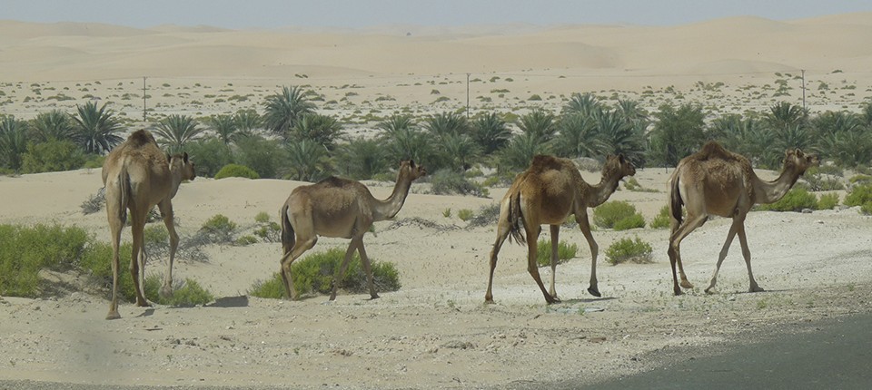 Emirate, ReisenHeute ging es in die Wüste. Zusammen mit acht anderen Familien, fuhren wir ca. 1,5h außerhalb von Abu Dhabi. Dann ging es noch ein paar Minuten bis an das Ende der Teerpiste. Nun hieß es „Luft aus den Reifen“ und ab in den grossen Sandkasten.