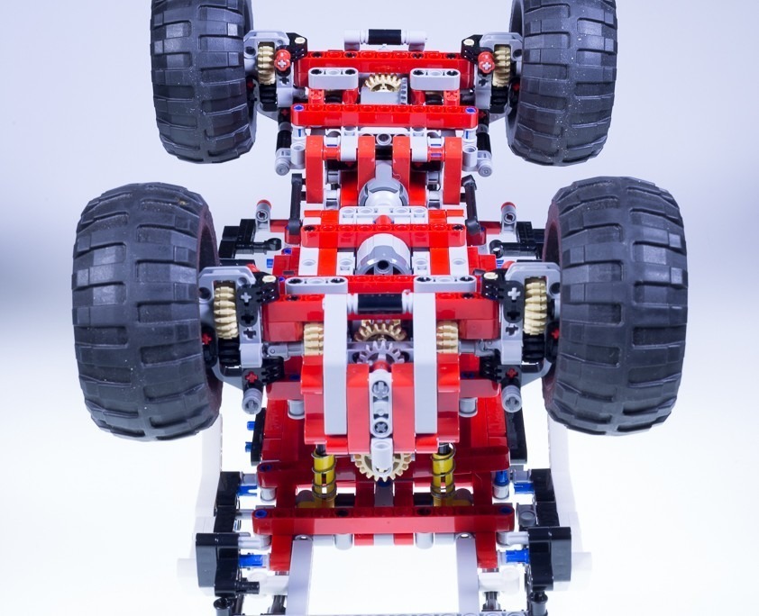 Die Details sind aber genial. Angetrieben von 2 Motoren und der kompletten Achsverschränkung schafft er jedes Hindernis. Und soll er doch mal schneller fahren, so wird innerhalb von 5 Minuten die Übersetzung geändert.